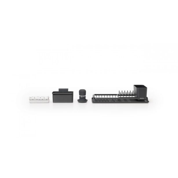 Brabantia 4-delni set za pomivanje temno siv je kompakten z odstranljivim držalom za jedilni pribor.