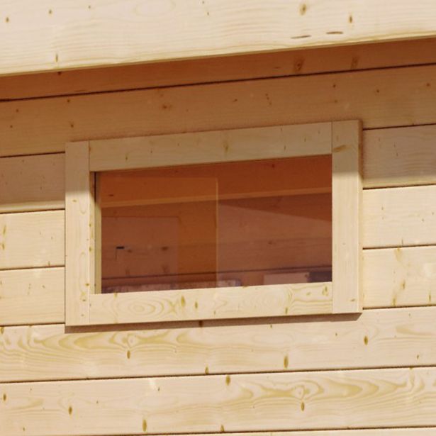 Spustite snevno svetlobo v vašo vrtno uto s podolgovatim fiksnim oknom za debelino stene 38 mm. Okno ima zunanje dimenzije (ŠxV) 84 x 44 cm. Okno iz umetniškega stekla je na voljo v naravnem stanju. Naj vaša vrtna uta 38 mm zasije od znotraj in ji dajte poseben videz z dolgim, fiksnim oknom.