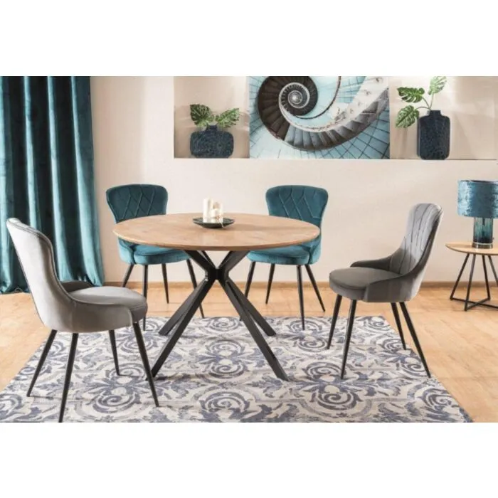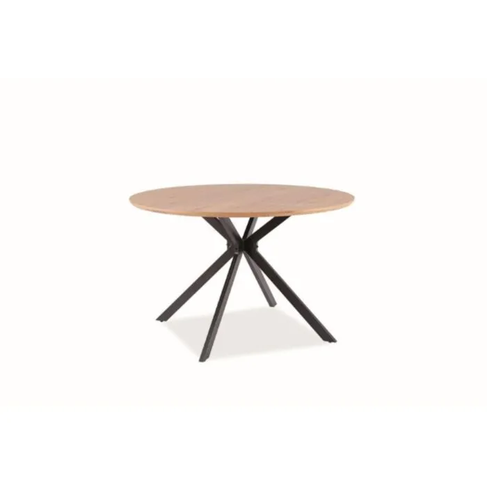 Okrogla jedilna miza ASTRAL je narejena iz kvalitetnih materialov in je sodobne oblike. Mizna plošča je narejena iz MDF- ja in furnirja v barvi hrasta. Podnožje je izdelano iz kovine v črni mat barvi.
