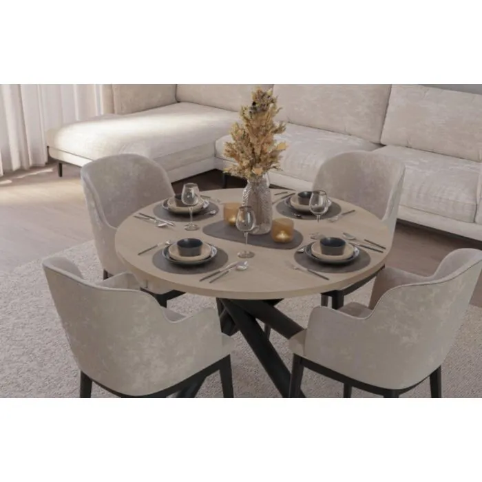 Okrogla jedilna miza OLIJA je eleganten kos pohištva, ki popestri vaš prostor s svojo eleganco in prefinjenostjo. Primerna je za vsak prostor, tako za dnevno sobo, jedilnico ali pa kakšen drugi prostor, v katerem potrebujete več prostora za organizirano shranjevanje.