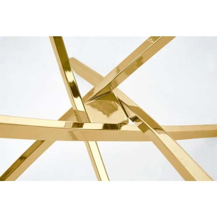Okrogla miza RAMONDO2 je atraktivna in sodobna miza iz stekla. Podnožje je iz kvalitetne kovine v zlati barvi.