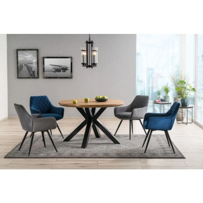 Okrogla miza TIME je praktična v jedilnih, dnevnih ali pa vrtnih prostorih vašega doma. Njena preprosta eleganca gladkih linij furnirja predstavlja sodoben pristop h klasični ureditvi doma. Je zelo stabilna in vsestransko uporabna miza. Mizna plošča je izdelana iz furnirja, noge pa iz kovine v črni mat barvi.