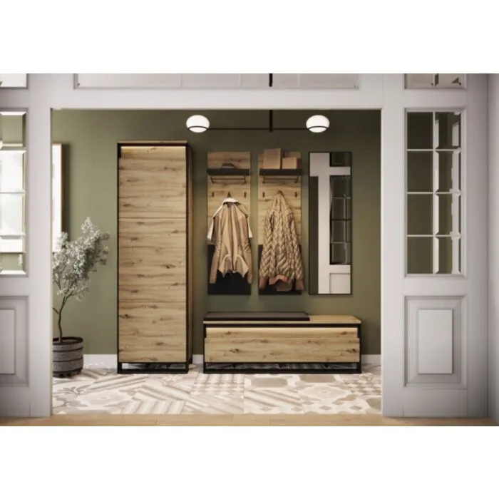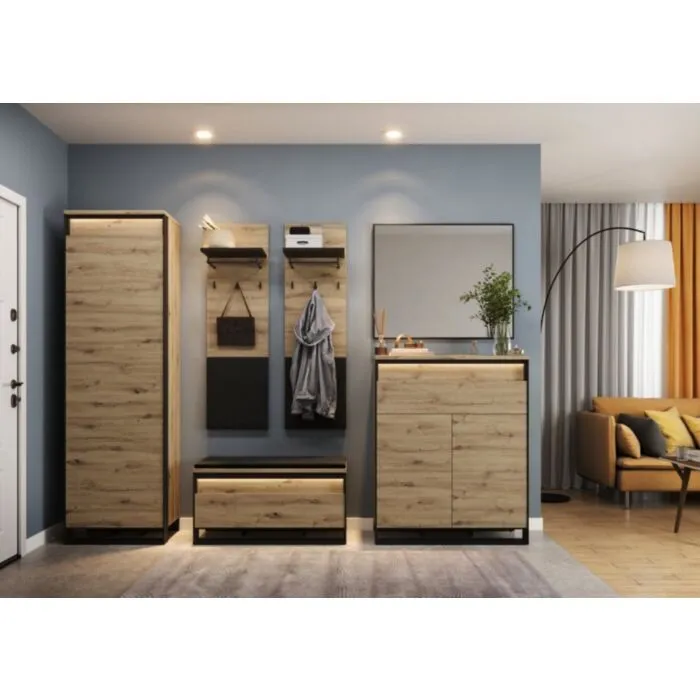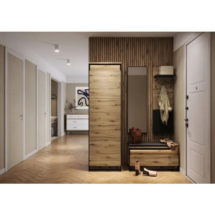 Omara KVIN 1 je večnamenski kos pohištva. Odlično se bo podala v predprostor, prav tako pa jo lahko uporabljate, kot manjšo garderobno omaro. Omara KVIN 1 ne le, da odlično organizira razpoložljiv prostor, temveč vam pomaga tudi pri organizaciji in olajša shranjevanje različnih čevljev ali predmetov. Ena njenih ključnih prednosti je kompaktna velikost, ki se odlično prilega majhnim hodnikom. Ne glede na to, ali imate omejen prostor, vam bo ta omara zagotovila praktično shranjevanje oblačil, obutve in drugih potrebščin.