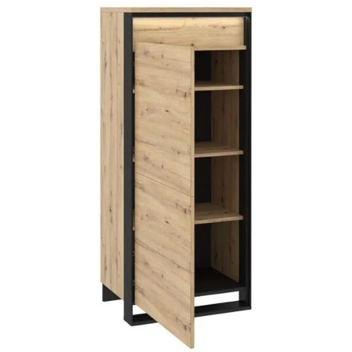 Elegantna omara KVIN ima 4 globoke predale. Tridimenzionalni značaj front je dodatno poudarila LED osvetlitev (vključena v ceno). Ima moderen dizajn s pridihom elegantnosti. Udobno uporabo podpira mehanizem PUSH TO OPEN.