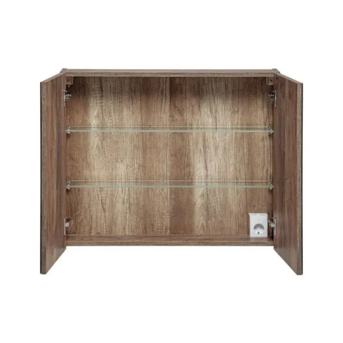 Omarica z ogledalom KELLY 80 je narejena iz kvalitetne laminirane plošče. Omarica z ogledalom optično poveča prostor in zagotovi dodaten prostor za shranjevanje.Vsebuje mehko zapiranje in steklene poličke v omari.