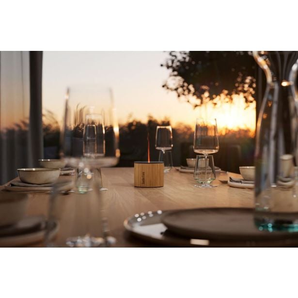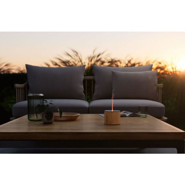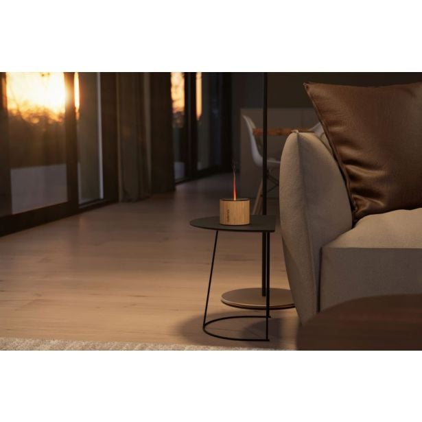 Izvrsten osvežilnik prostora Nora očara čute: Nora odišavi prostor z eteričnimi olji, njena jantarna svetloba pa poskrbi za pomirjujočo igro plamena s hladno meglico. Svetlobo je mogoče zatemniti in ugasniti. Nora deluje do 18 ur z enim polnjenjem vode. Zahvaljujoč kablu USB-C in njeni polnilni bateriji jo lahko uporabljate tudi na poti do 7 ur z enim polnjenjem baterije. Njen pokrov iz črnega aluminija in trajnostno ohišje iz bambusa polepšata vsak prostor. Zahvaljujoč zaščiti pred pršenjem vode je Nora primerna tudi za zunanjo uporabo.