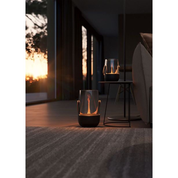 Vsestranska in enostavna za uporabo: Sophie – laterna in aroma difuzor obenem. Primerna je tako za notranjo kot zunanjo uporabo. Njena jantarna svetloba ustvarja realističen učinek plamena. Delovanje do 11 ur z enim polnjenjem integrirane baterije. Odporna tudi na škropljenje vode (IP44).