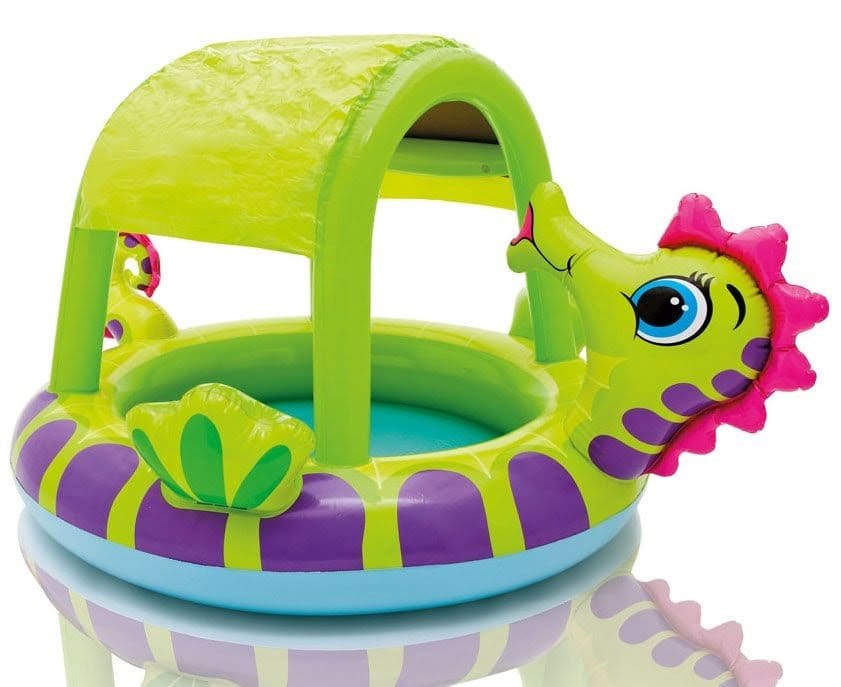 Napihljivi otroški bazen Morski konjiček Intex s streho je enkratna rešitev v vročih sončnih dneh.