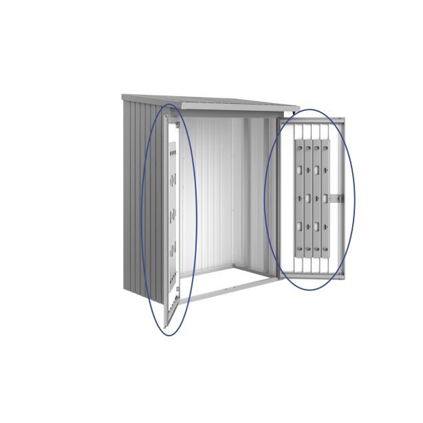 Dvokrilna vrata s cilindrično ključavnico vrtljivega ročaja in urejenim sistemom na notranjih straneh vrat; odpiranje vrat: širina: 135 cm, višina: 171 cm.