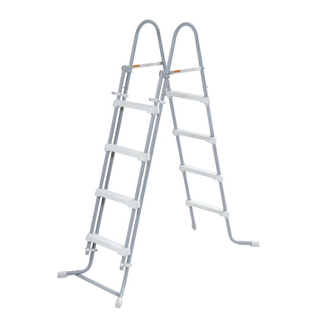 – varnostna lestev 2 x 3 nastopi sivo lakirana (v skladu z novimi EN16582 smernicami, omogoča enostaven preklop nastopnega dela navzgor, tako je onemogočen dostop v bazen).