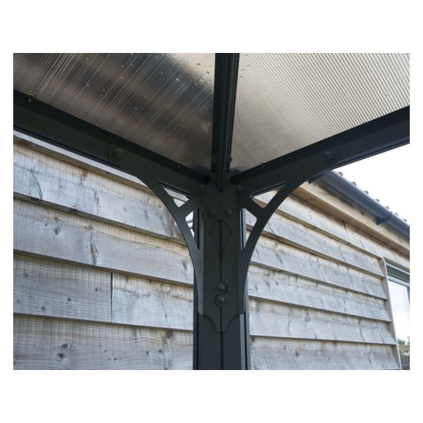 Vrtni paviljon Palram Palermo 4300 v sivi barvi ima estetski videz, odporen proti koroziji.