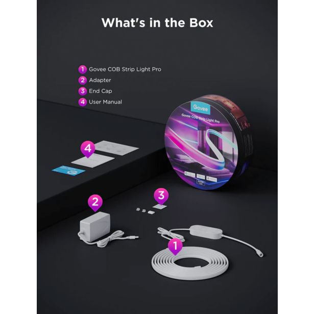Govee COB Strip Light Pro je napreden LED trak, zasnovan za ustvarjanje izjemno gladke in enakomerne osvetlitve v vašem domu. S tehnologijo Chip-on-Board (COB) in gostoto 1260 LED/m zagotavlja neprekinjeno svetlobo brez vidnih točk, kar je idealno za različne notranje prostore.