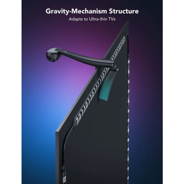 Enostavna namestitev: Fleksibilen LED trak se preprosto namesti na zadnjo stran televizorja, kamera pa diskretno spremlja zaslon za optimalen učinek.