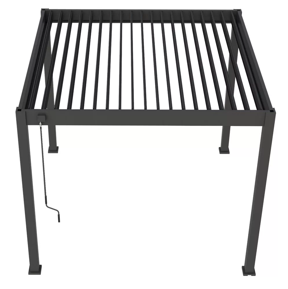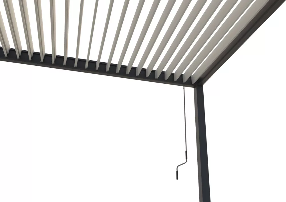 Bioklimatske pergole so pergole z vrtljivimi lamelami, ki jih ročno vrtite z ročajem in jim prilagajate kot glede na potrebno senčenje, zračenje ali zaščito pred dežjem. Te pergole so zasnovane tako, da omogočajo optimalno prilagodljivost glede na vremenske razmere in vaše potrebe po udobju.