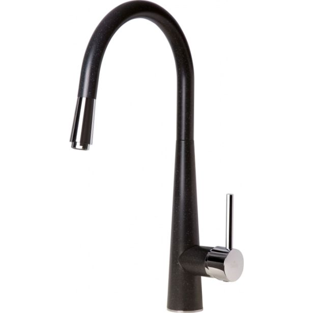 Elegantna kuhinjska armatura, ki jo enostavno izvlečete in s tem omogočite pomivanje večjih posod ali čiščenje celotne površine korita. Črna barva omogoča kombiniranje s koritom iz nerjavečega jekla ali temnega granita.