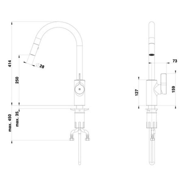 Stranska kuhinjska pipa Unitas Elite E22, srebrne barve.