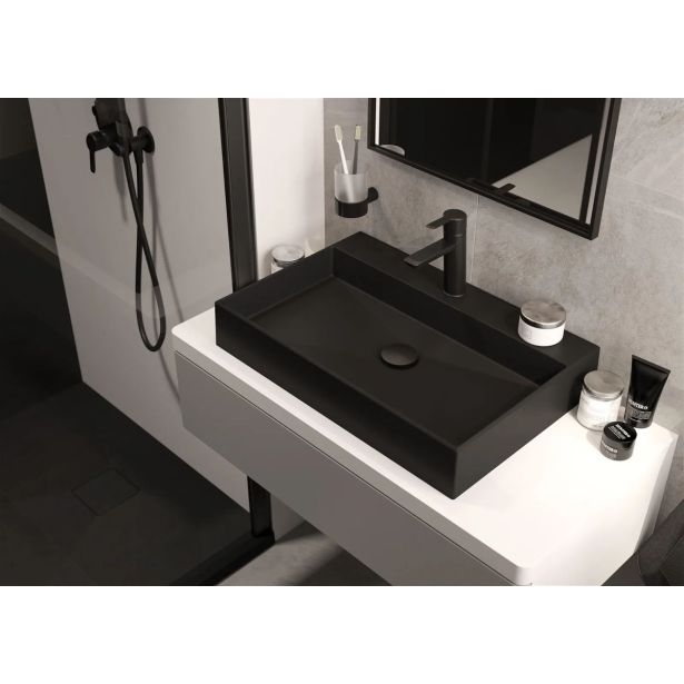 Pipa umivalnika z dvignjenim telesom iz kolekcije Arnika, ki jo odlikujejo prijetne, harmonične oblike in zaobljene oblike, je pipa s klasično in elegantno črno mat površino okovja Deante Nero, ki je rezultat inovativne tehnologije. Njegove posebne lastnosti pomenijo, da na pipi ne puščate prstnih odtisov. Površinska struktura je trpežna in enostavna za čiščenje. Če želite odstraniti umazanijo, samo obrišete z mehko krpo. Še več, zaradi globoke črne barve so druge barve svetlejše, polnejše in izrazitejše.