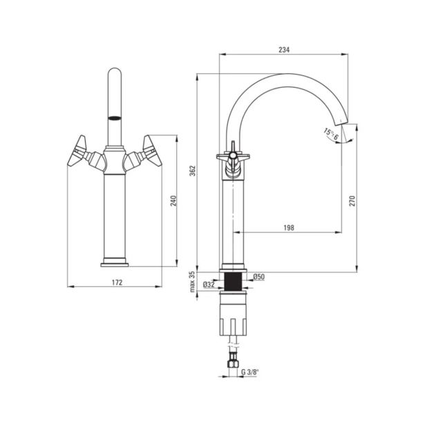 Pipa za umivalnik Deante BQT M25D je vrhunska kopalniška armatura, ki združuje moderni dizajn in visoko funkcionalnost.