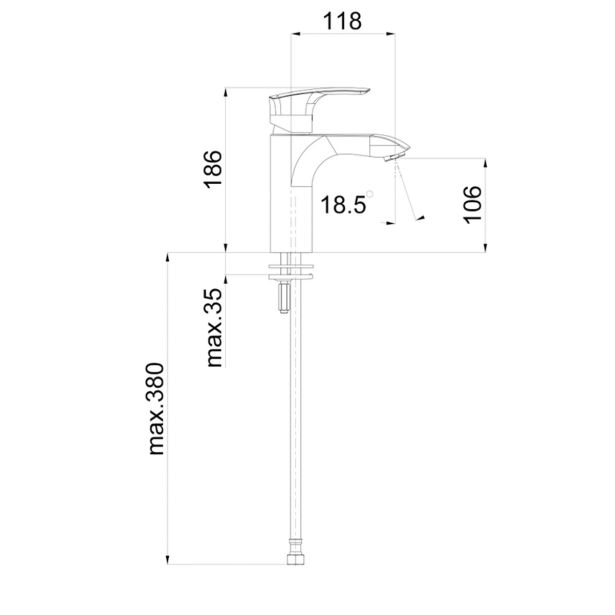 • Višina armature: 186 mm.
