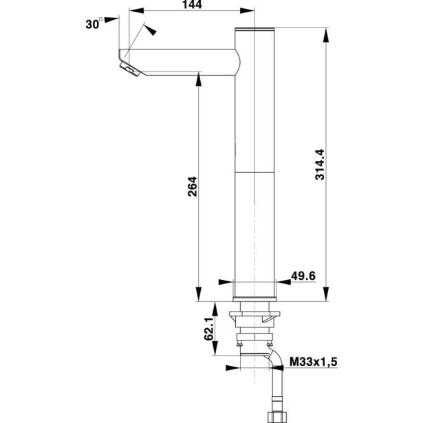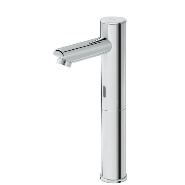 Povišana elektronska armatura za umivalnik, za hladno ali predmešano vodo, baterijsko napajanje 9 V, programabilna elektronika.