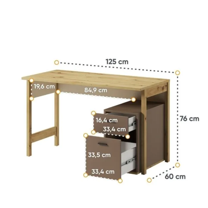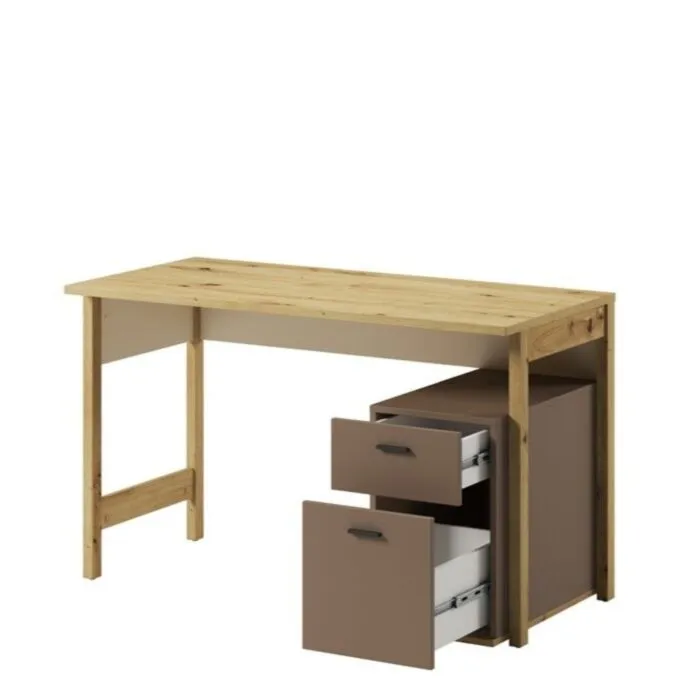 Pisalna miza LENI je funkcionalna in kakovostna. Je popolna rešitev, ki ne le izpolnjuje vseh potreb pri delu in učenju, temveč služi tudi kot eleganten dodatek sobi. Miza je narejena iz kakovostne laminirane plošče. Ima dva predala, kar omogoča dodatno shranjevanje in organiziranost. S svojimi barvami se poda v vsak prostor. Zaradi svoje oblike in visokokakovostnih materialov je trpežna in vzdržljiva. Odporna je na praske, udarce in obrabo. Je enostavna za vzdrževanje, saj je površina preprosta za čiščenje in negovanje. Estetsko se poda v vsak prostor ter ima dobro odpornost na madeže in vlago.