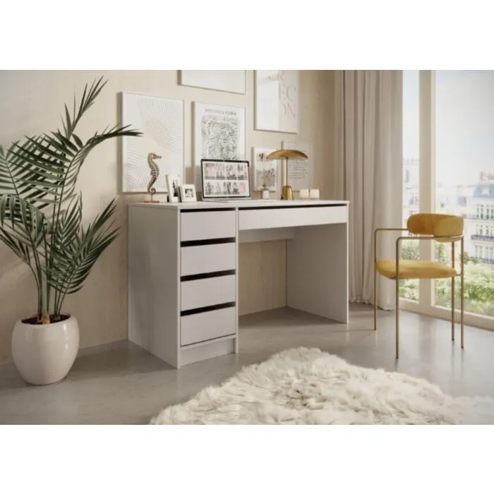 Pisarniška miza TEREZA je narejena iz laminirane plošče debeline 16 mm. Miza vsebuje ABS robove. Njen sodoben dizajn ter nežna kašmir barva se bo podala v vsak prostor.