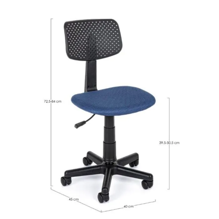Pisarniški stol ARTEMIS modra ima podlogo iz najlona. Sedež je ponjen s peno in prekrit s 100% mrežasto tkanino. Hrbtni del je iz plastike in ima možnost reguliranja višine.
