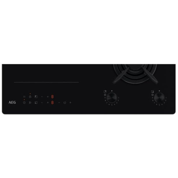 AEG praktična kuhalna plošča nudi dva plinska gorilnika in dva indukcijska kuhalna območja. Navdušuje s preprostim upravljanjem z vrtljivimi gumbi in elektronskimi tipkami, z rešetkami iz litega železa, Booster funkcijo ter funkcijo združevanja dveh kuhalnih območij.