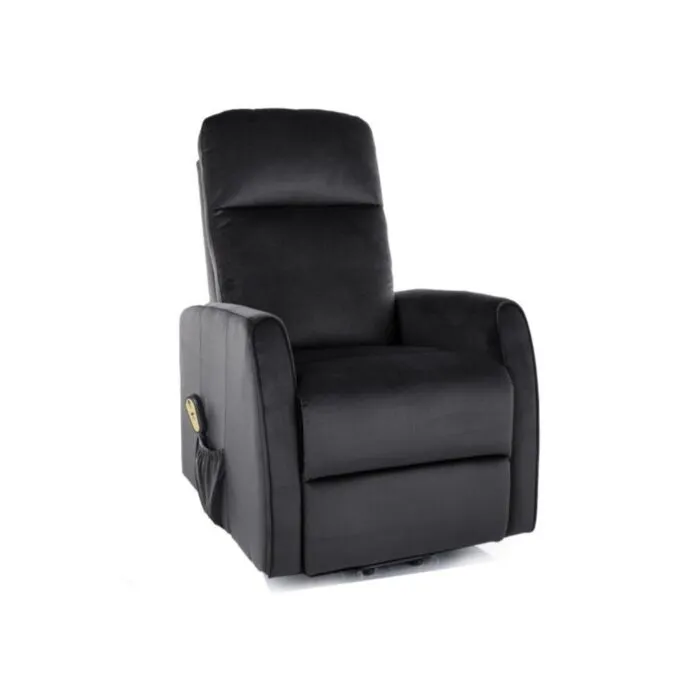 Počivalnik IZI – črna, je eleganten in zelo udoben kos pohištva, ki je primeren za vsak prostor. Narejen je iz žametne tkanine, kar zagotavlja prijetno sedenje oziroma počitek. Naslon za noge je raztegljiv in poskrbi za še večje udobje in sprostitev v polležečem položaju. Spremenite lahko tudi nagib hrbtišča. Ima dvižno funkcijo, ki jo lahko regulirate z daljinskim upravljalnikom.