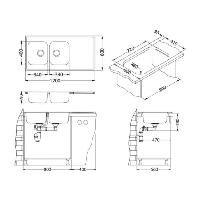 Inox pomivalno korito CP 100 je nasadno. Korito ima dve posode in odlagalno površino. Postavitev korita je univerzalna (levo ali desno).  Minimalna širina omarice je 80 cm. Velikost posode je 34 x 40 x 19.