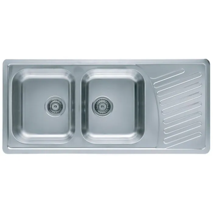 Inox pomivalno korito E70 je vgradno. Korito ima dve posode in odlagalno površino. Postavitev korita je univerzalna (levo ali desno). Minimalna širina omarice je 80 cm. Velikost posode je 34 x 40 x 19.