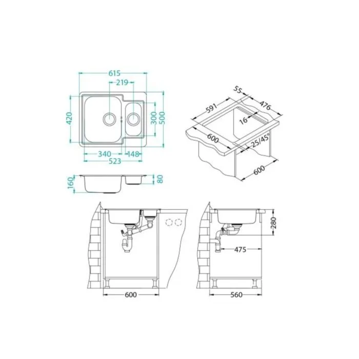 Inox pomivalno korito LN 50 je vgradno. Korito ima dve posodi, eno večjo in eno manjšo. Postavitev korita je univerzalna (levo ali desno).  Minimalna širina omarice je 60 cm. Korito vsebuje sifon.