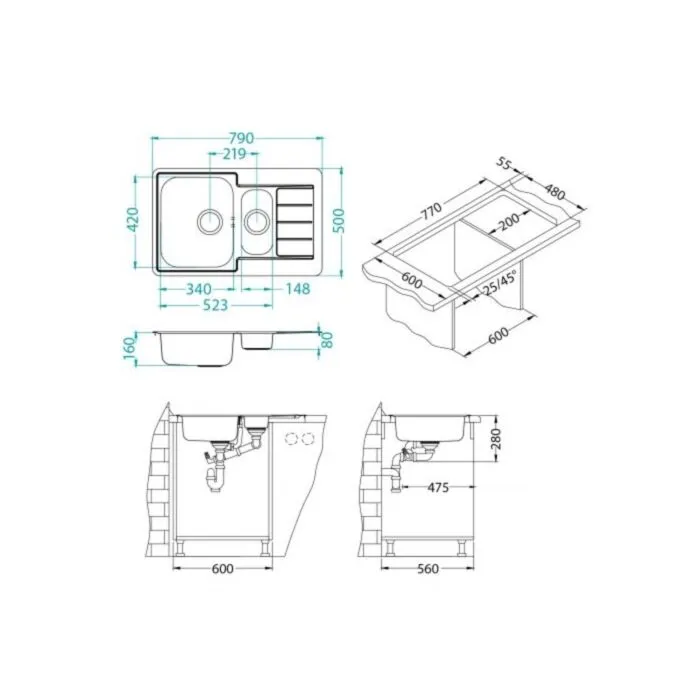 Inox pomivalno korito LN 70 je vgradno. Korito ima dve posodi, eno večjo in eno manjšo, ter odlagalno površino. Postavitev korita je univerzalna (levo ali desno).  Minimalna širina omarice je 60 cm. Korito vsebuje sifon.