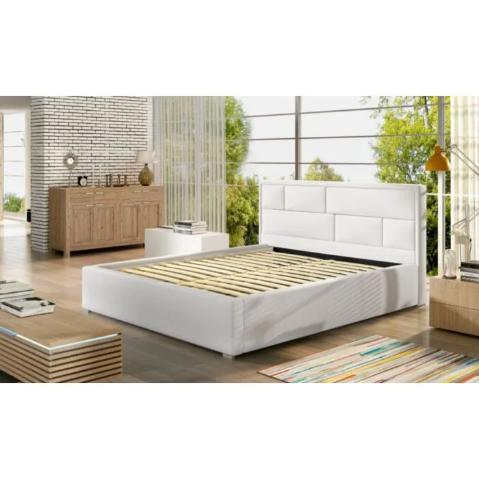 Moderno oblazinjena postelja LATICIJA modernega dizajna vam bo popestrila vaš prostor. Odličen mehanizem vam bo omogočal, da boste lahko posteljnino pospravili pod posteljo. Vsebuje dvižno letveno dno in predal.  Dobavljiva v več barvah blaga. Narejena je v EU.