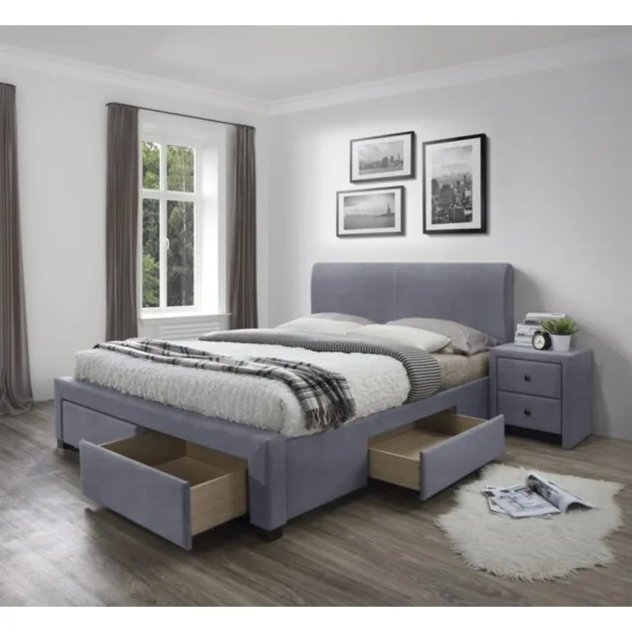 Oblazinjena postelja MADONA3 160 je elegantna, sodobna in kvalitetna postelja s predali. Oblazinjena je z mehko tkanino, sorodno žametu. Postelja ne vsebuje vzmetnice.