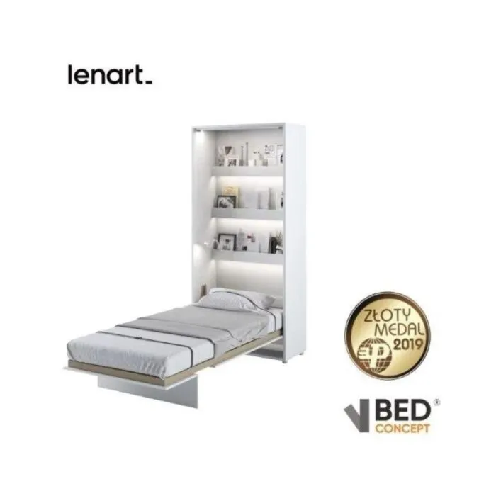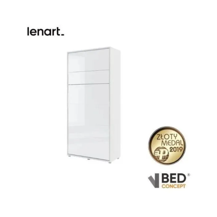Postelja v omari METULJ 90 x 200 cm – bela visoki sijaj