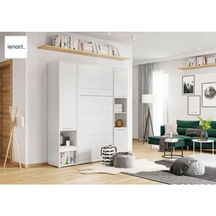Stenska vertikalna postelja METULJ PRO vam omogoča, da katero koli sobo spremenite v popolno uporabno in estetsko privlačno spalnico. Revolucionaren mehanizem, s katerim lahko posteljo odpirate in zapirate z eno roko, je super rešitev za vse, ki jim zmankuje prostora v spalnici. Postelja v omari je tako udobna kot klasična postelja – zahvaljujoč letvenemu podu in trdnem kovinskem okvirju, se lahko udobno sprostite. Posebna ključavnica preprečuje samostojno odpiranje stenske postelje, funkcija STOP pa preprečuje nenaden padec postelje pri zlaganju in razstavljanju. Opremljena je tudi z kovinsko nogico, ki omogoča večjo stabilnost postelje in trakovi za pritrditev posteljnine ki omogočajo zlaganje postelje skupaj s posteljnino.