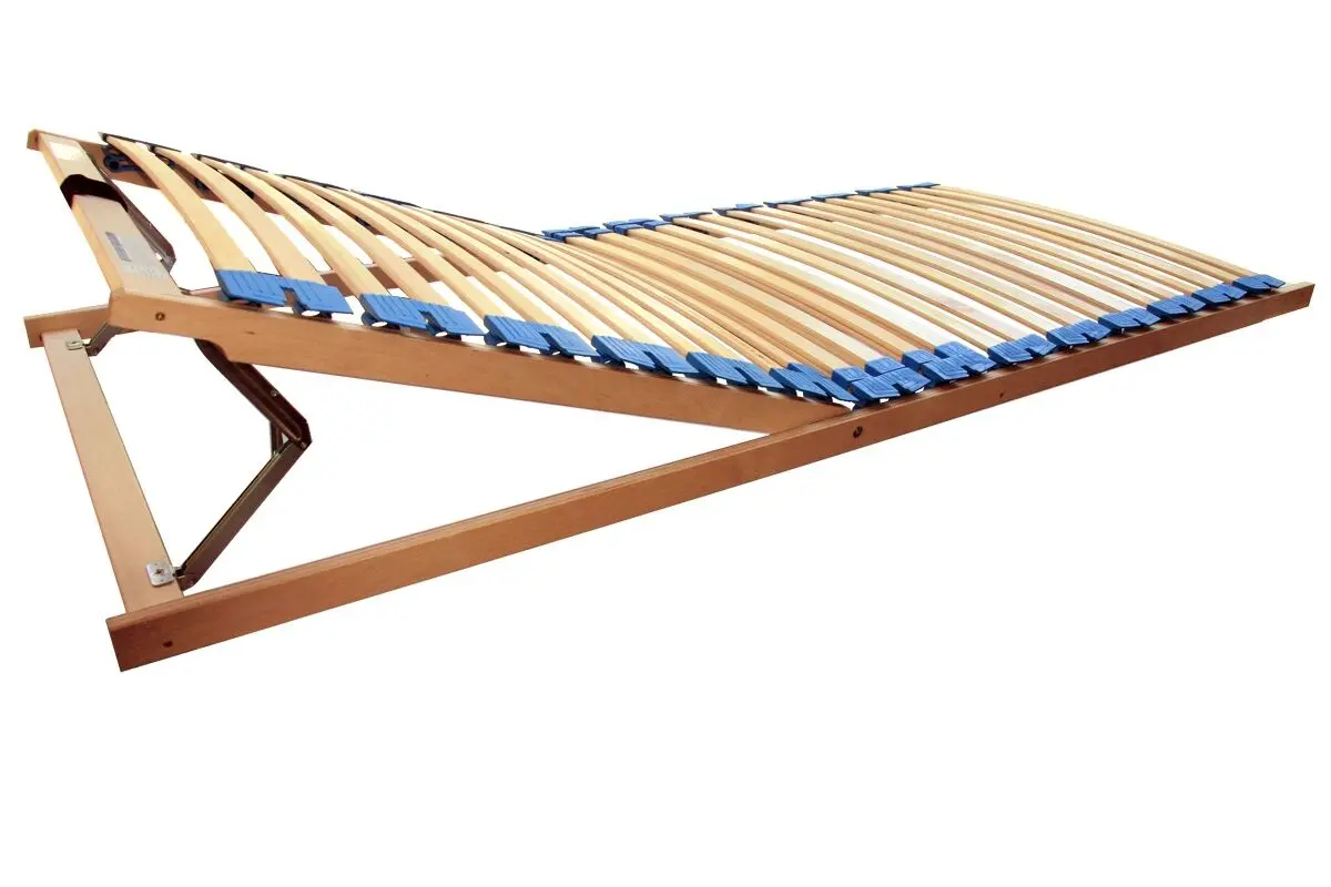 Podloga omogoča dvigovanje vzglavja od ledvenega dela navzgor, prečne letvice so prožne in so z gumenimi plastičnimi nosilci vpete v lesen okvir, nosilci segajo do roba ležišča. V hrbtnem delu lahko nastavite trdoto ležišča po vaših željah.