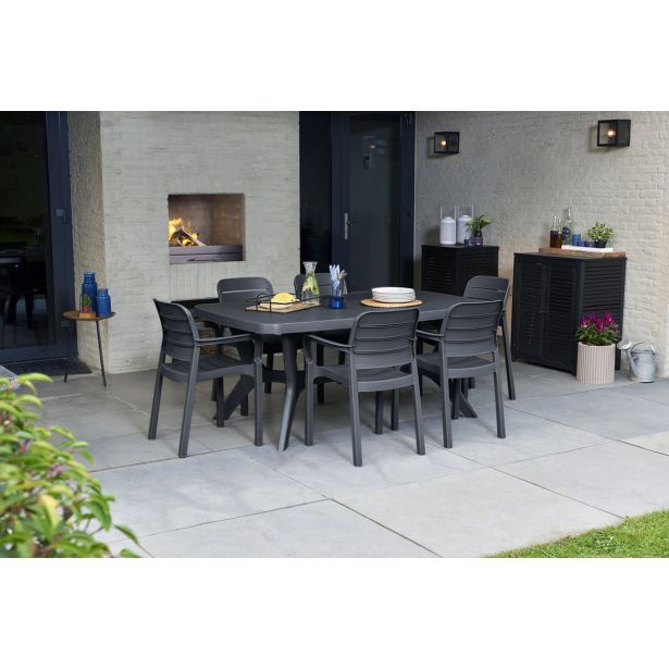Keter mizia Baltimor ima robustno konstrukcijo in eleganten, klasičen dizajn. Idealno za družinska srečanja in srečanja s prijatelji. Univerzalni dizajn vam omogoča, da ga dopolnite z različnimi modeli stolov. Trpežna in odporna na atmosferske razmere in UV žarke. Enostaven za čiščenje in enostaven za namestitev.