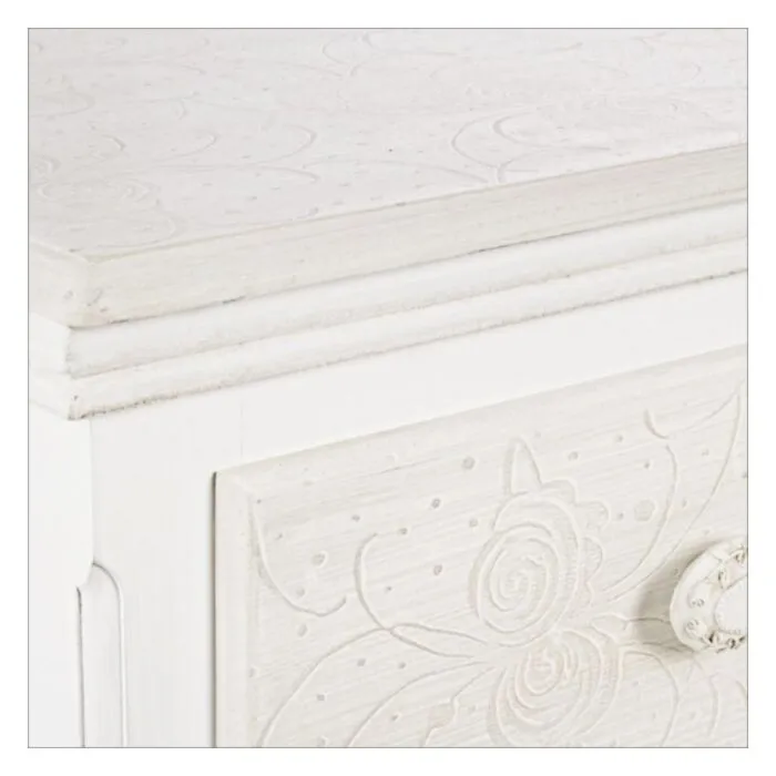 Predalnik 3C CLORINE v rustičnem slogu vas bo navdušil. Predalnik ima 3 predale. Dobavljiv je v beli barvi z dodanim motivom cvetic.