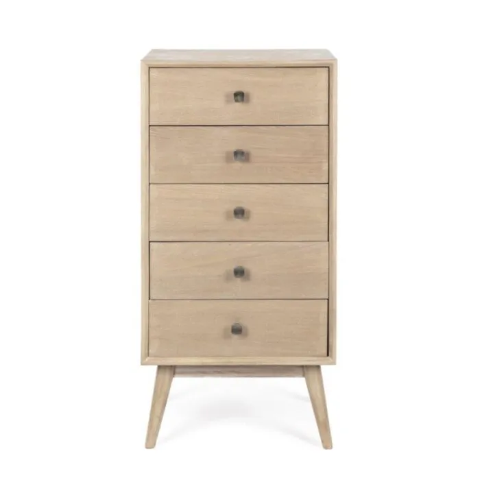 Predalnik ALANNIS 5C, je kakovosten kos pohištva. Zaradi svoje razporejenosti, lahko vanj pospravite marsikaj. Okvir je narejen iz lesa jelke. Zgornje in stranske plošče so narejene iz MDF-ja. Ročaji so iz kovine. S svojo obliko in barvo popestri vsak prostor.