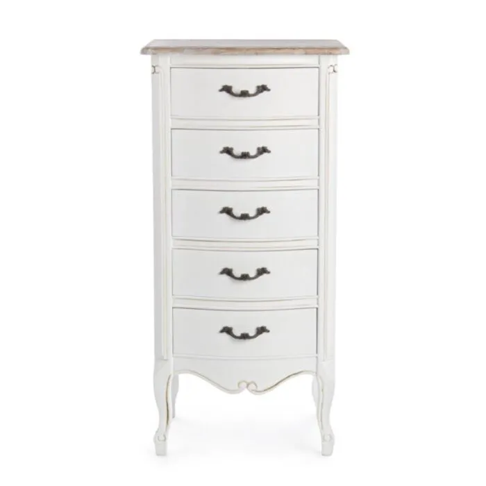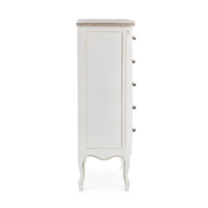 Predalnik JUSTINE, je eleganten in kakovosten kos pohištva. Okvir je narejen iz lesa pavlovnije in furnirja. Plošča je narejena iz MDF-ja. Ima kovinske ročaje. S svojo obliko in barvo popestri vsak prostor.