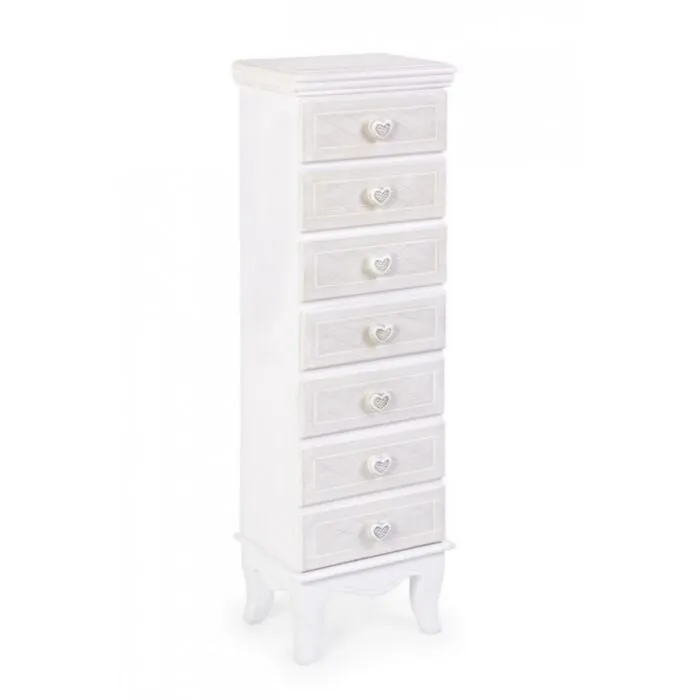 Predalnik 7C CHARLENE je narejen iz MDF-ja in ima gumbe iz polismole.