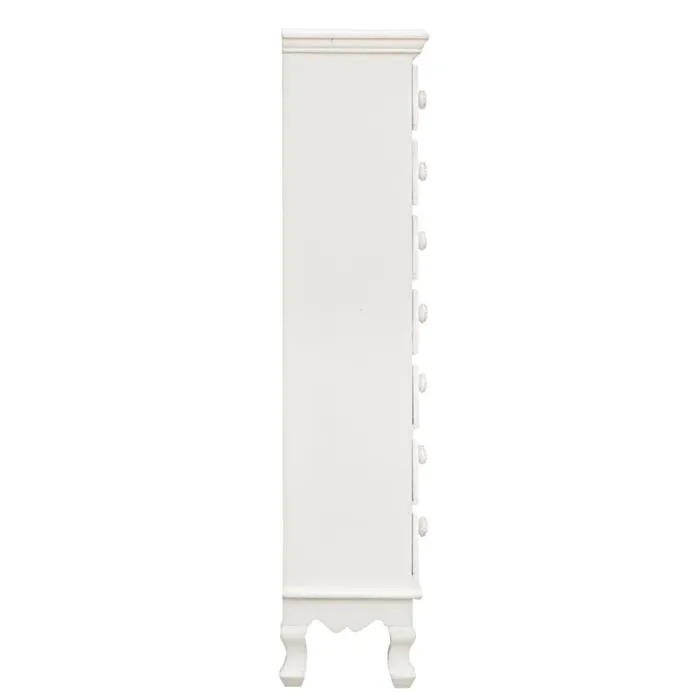 Predalnik 7C CLORIN je eleganten kos pohištva, ki popestri vaš prostor. Njen poseben dizajn vas bo navdušil, saj prinese vašemu prostoru eleganco in prefinjenost. Na voljo je v beli barvi, obogaten z nežnim motivom cvetja, ki dodaja predih elegance in topline.