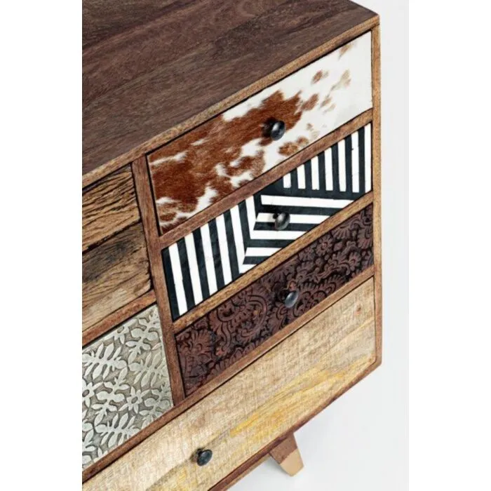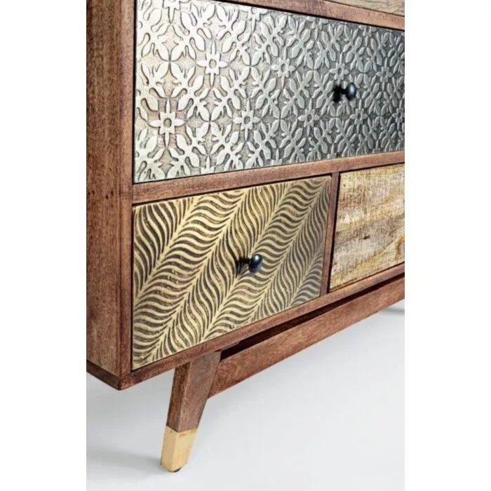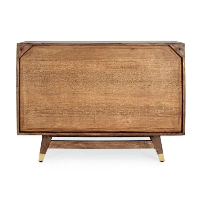 Predalnik 7C DHAVAL ima okvir iz lesa in MDF-ja. Ima jeklene ročaje.