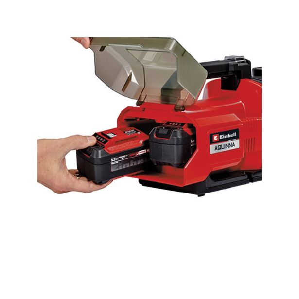 Akumulatorska vrtna črpalka AQUINNO napajata dve 18 V akumulatorski bateriji Power X-Change (36 V). Vse baterije za polnjenje sistema, zasnovane kot član revolucionarne družine Power X-Change, lahko prilagodljivo in brez omejitev uporabljate v delavniškem in vrtnem orodju sistema PXC. Za pravilno nastavitev je na voljo ECO stikalo z dvema nastavitvama: bodisi varčni način z zmanjšanim tlakom dovoda ali s polno močjo.