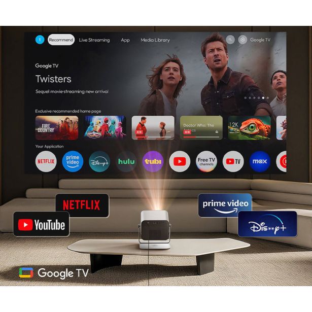 • Vrhunska barvna projekcija: Super Color in HDR10 optimizirata barve za vsako okolje, maksimalna velikost projekcije do 300″ (7,62 m).