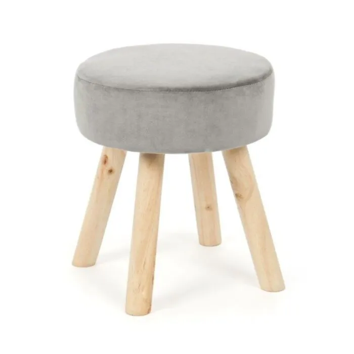 Tabure ADELINE siva ima okvir iz borovega lesa in MDF-ja, prevleka je iz poliestra z žametnim učinkom.