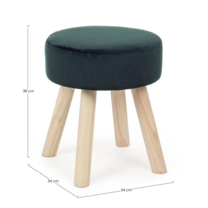 Tabure ADELINE zelena ima okvir iz borovega lesa in MDF-ja, prevleka je iz poliestra z žametnim učinkom.