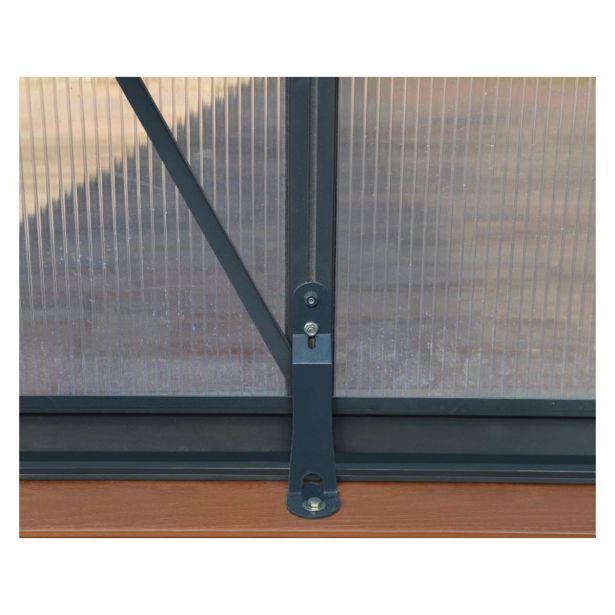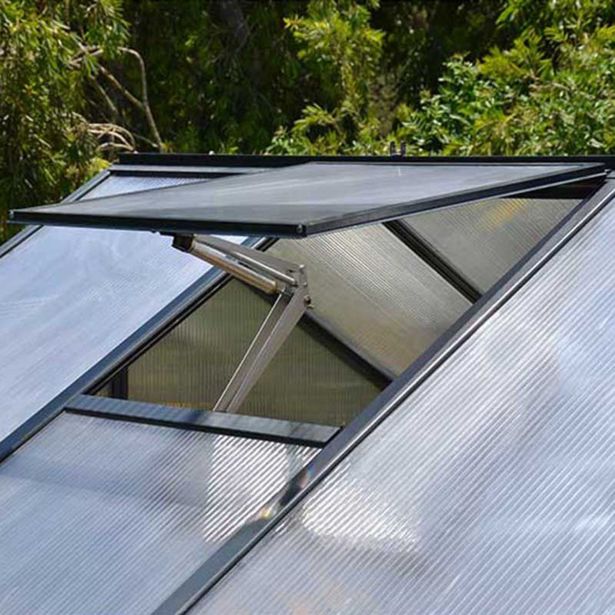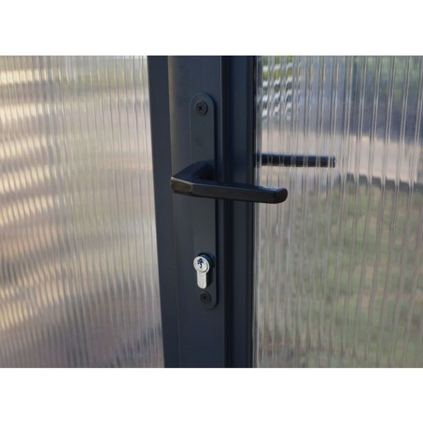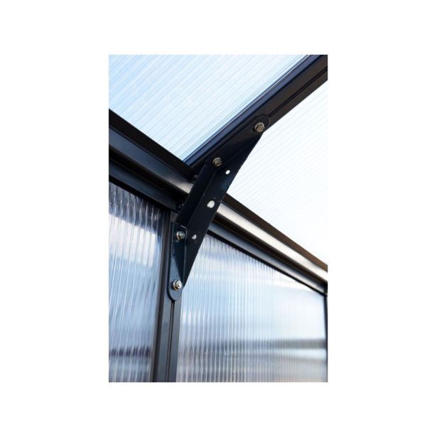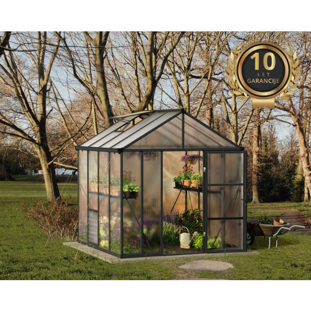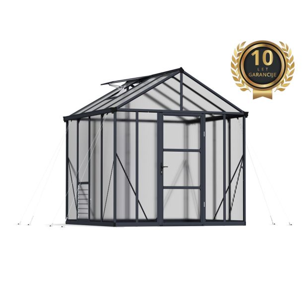 Rastlinjak Glory 8×8 ima debel aluminijasti okvir, ki je odporen proti toči, udarcem in rji.